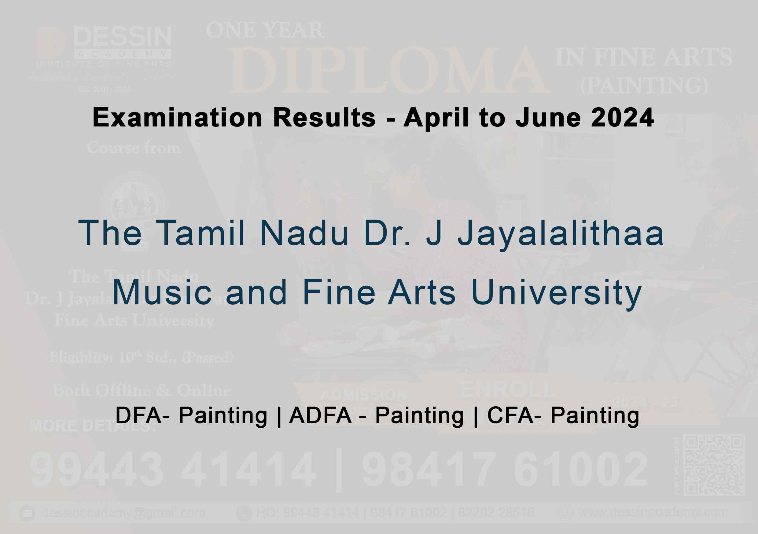 Examination Results - April to June 2024 The Tamil Nadu Dr. J Jayalalithaa Music and Fine Arts University